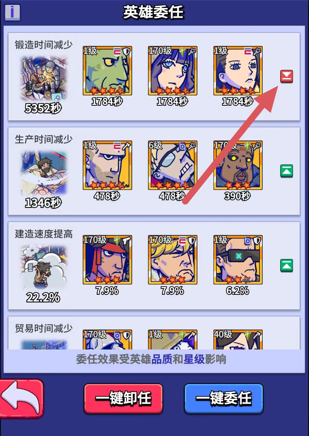 ③ 如遇到周活动装备锻造榜等,需要短时间锻造大量装备 ,可以在英雄委托中将锻造时间委托置顶,再一键委任,即可达成三秒一件蓝装。