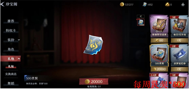 4、珍宝阁每周限购:花20000金币换500灵契
