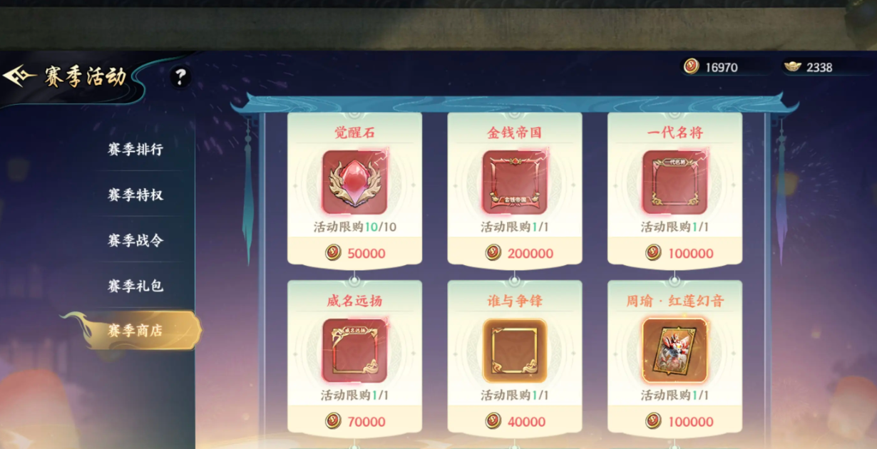 一个赛季为大家带来的时间是持续45天,而商店里面每15天就会刷新其中的物品,所以大家在里面可以注意到,如果确定是要快速清空的话,建议大家可以在兑换记录里面快速的找到觉醒石来进行对话,那么在赛季里面路了一如果大家超100万氪金的话,建议先优先兑换的要是觉醒石哦,然后兑换其他的强化武将也可以让大家的强度上升一些,那么第二个方式就是通过限时活动,游戏里面限时活动获取到的觉醒石机会也比较多,但是拿到的次数是数量是有限的,所以大家第二点是通过限时活动去完成,第3个途径就是竞技场,在竞技场里面都要每次上升排名或者是完成胜利,系统都会给大家赠送一定的觉醒石奖励,所以在排名越高的情况下,打败敌人之后,大家能够获取到的资源确实是数量是会更多一些的,通过这些途径带来的觉醒石大家攒一攒其实是可以积少成多,完成很多角色的觉醒过程。