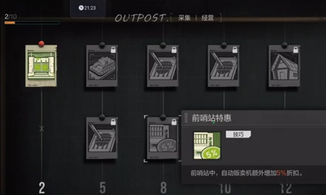 最后一个板块就是前哨站,这个板块和其他不同的是,它整体增加的是采集和经营方面,玩家们点亮类似天赋点之后,会在游戏中得到很多贸易机的优惠,然后其他的就是所有板块都拥有的蓝图和标记一类,所有的天赋点都可以由玩家们完成任务之后升级获取,天赋的平衡性还是非常不错的,有没有天赋能够影响的只有发育的进度,对于战斗体验来说没有影响。