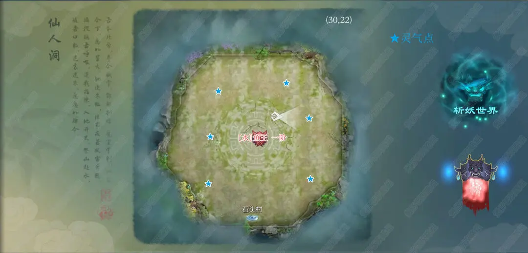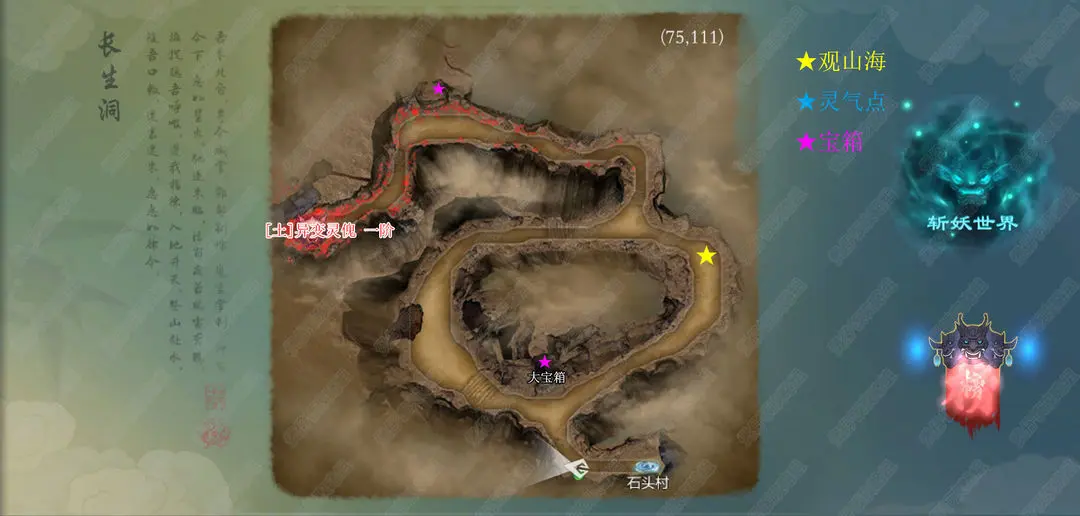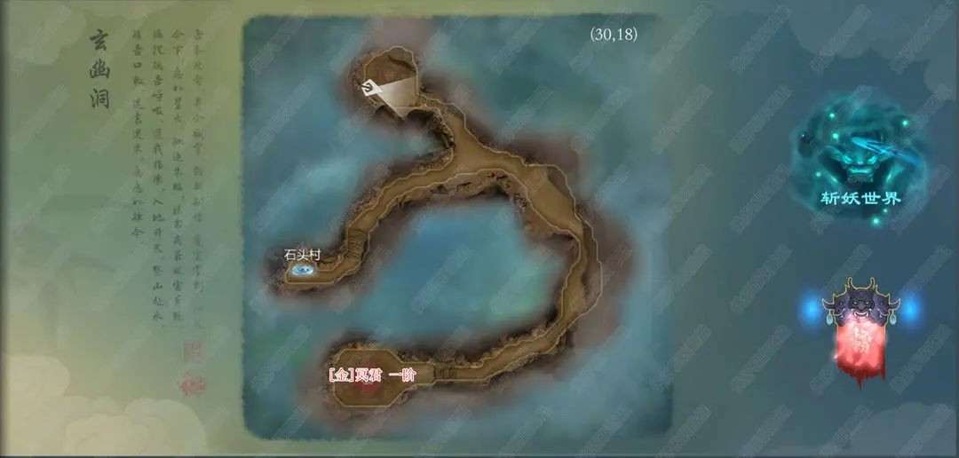 石头村最上方宝箱旁边击杀迎亲童子会出现巡山小妖,跟着巡山小妖走进入冰幽原传送点