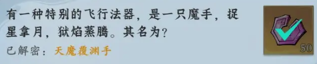 5、有一种特别的飞行法器,是一只魔手,捉星拿月,狱焰蒸腾。其名为?天魔覆渊手