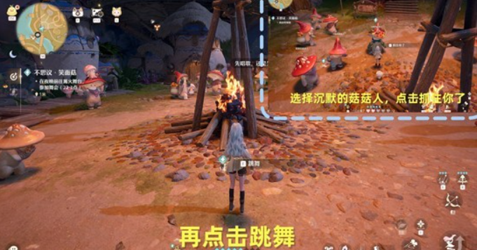 找到沉默的菇菇人,点击抓到你了,然后进行问答;