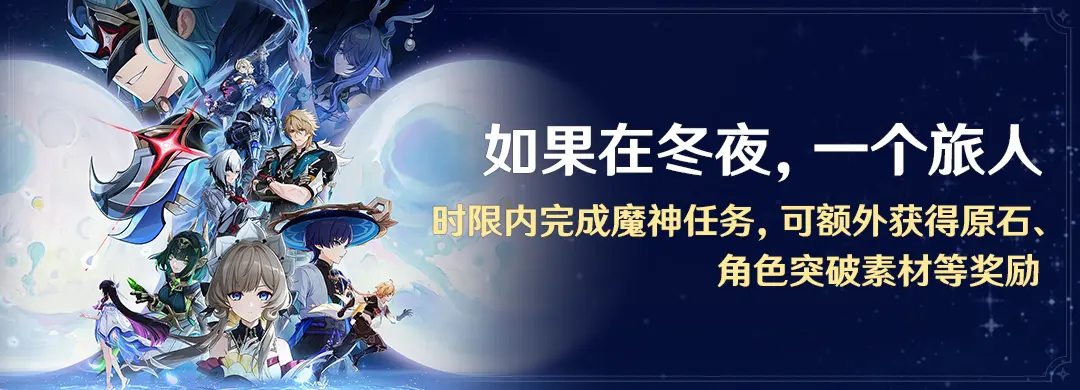 原神月之四版本限时活动「如果在冬夜,一个旅人」开启:在指定时间内完成魔神任务,即可额外获取原石、角色培养素材、区域特产等奖励。版本更新后永久新增魔神任务「空月之歌·第七幕」与「第八幕」,完成后可领取旅行者新衣装「复地重天」,并获丰富培养资源。