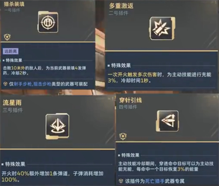 插件搭配:猎杀装填、多重激返、流星雨、穿针引线