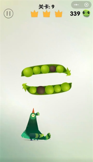 2、然后豌豆荚会转动,豆子的位置也会跟着变动,掌握好时机,将连在一起的青豆啄掉