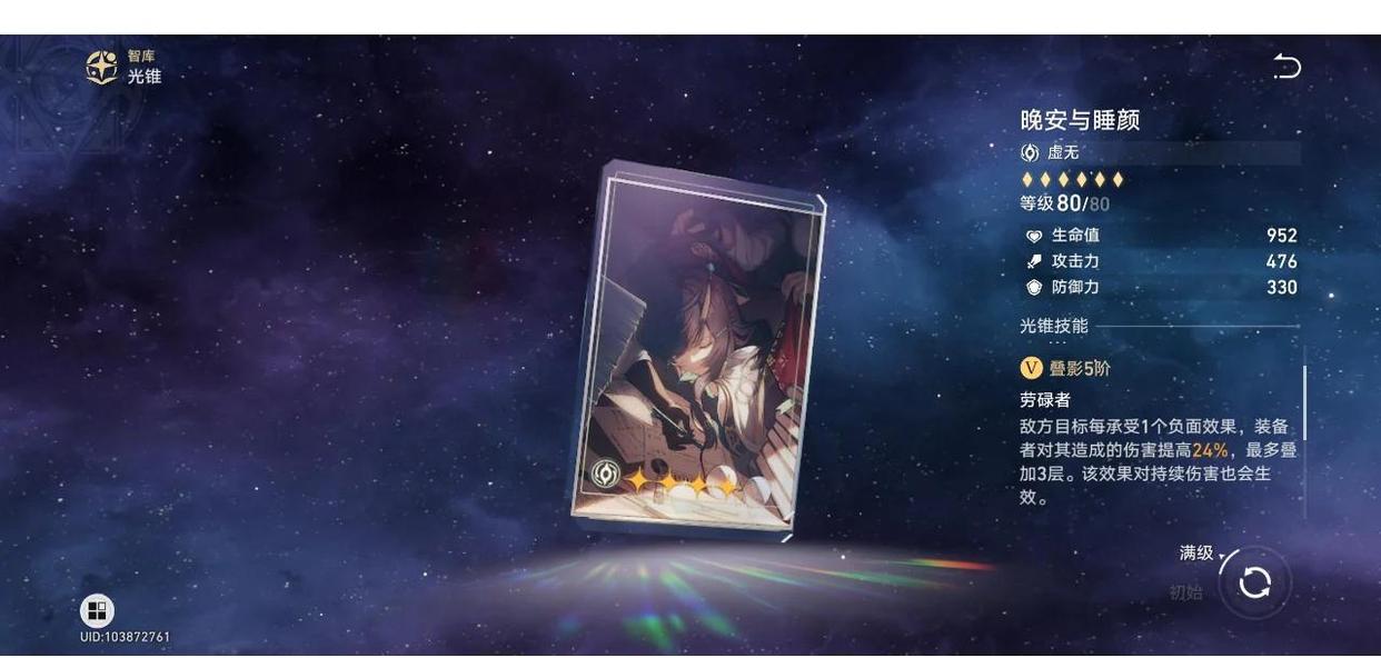 说明:1.0版本5星虚无武器就瓦尔特的专武以世界之名,有它就直接用。其次是4星的晚安与睡颜,属性上也很适合瓦尔特。另外两个相对差点,可以作为过渡使用,其他的光锥则完全不推荐。