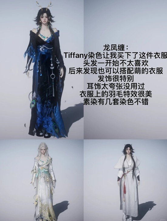 白龙:喜欢劲装可以入,优点是原色就很好看不太需要云霞,喜欢的人会很喜欢,像我一样不吃这种风格的人衣服就压箱底了,头发很少拿出来穿,配件其实不太百搭