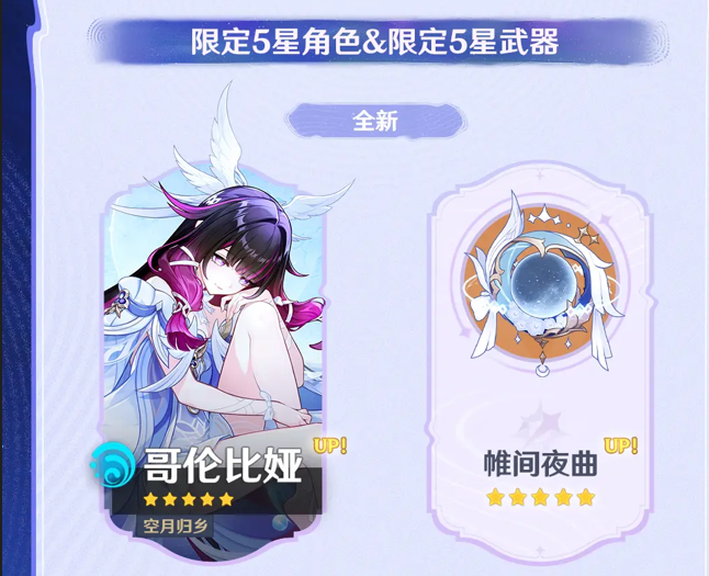 限定5星武器「法器·帷间夜曲」「长柄武器·支离轮光」,限定4星武器「长柄武器·镇山之钉」「法器·乘浪的回旋」「弓·幽夜华尔兹」、4星武器「单手剑·笛剑」「双手剑·祭礼大剑」的祈愿获取概率也将大幅提升!