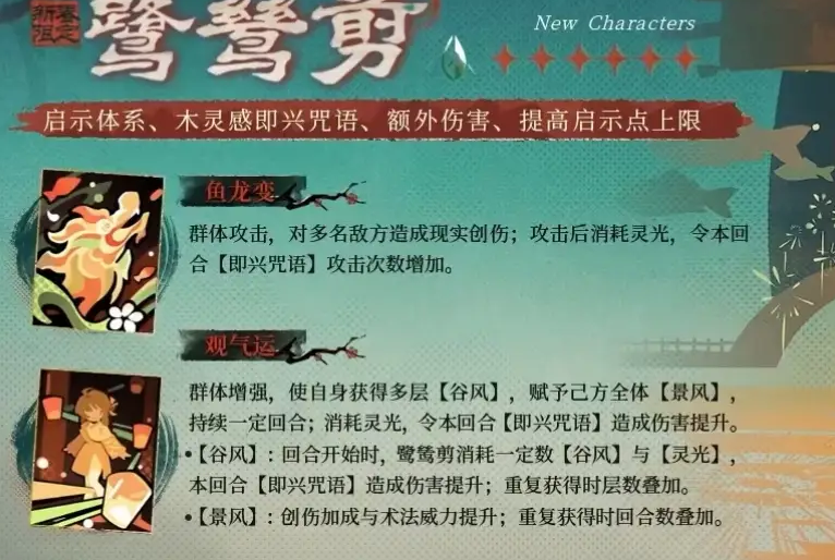 鹭鸶剪是《重返未来:1999》3.4版本新春限定的木系现实创伤启示队核心角色,拥有独特的即兴咒语强化机制与专属术阵系统,是木启示队的关键组件。以下是她的详细技能介绍与机制解析,供各位玩家参考。