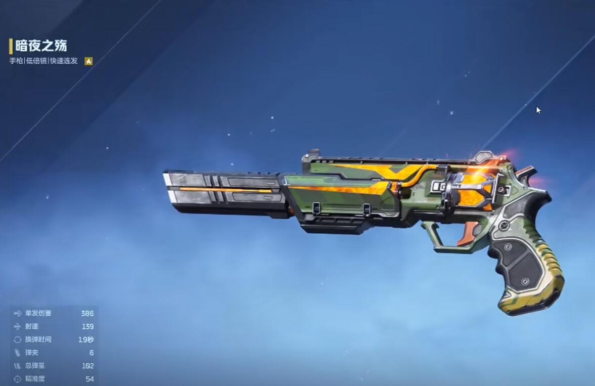 基础属性方面,“暗夜之殇”的单发伤害显著高于同阶手枪,且具备直线穿透能力:命中首个目标后,后续路径上的敌人将承受递减式伤害衰减,并同步提升使用者暴击率。这一特性使其在穿墙点射、掩体后压制及多人叠站场景中具备天然战术加成。