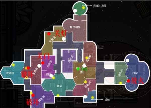 鹅鸭杀游戏玩家进入地图后会有不一样的角色扮演以及任务完成,所以还有需要做任务的点位,还有一个关键位置点位,每个地图不一样所以位置也不一样,掌握这些位置可以更好的完成任务,以下是各个地图的任务点位讲解。
