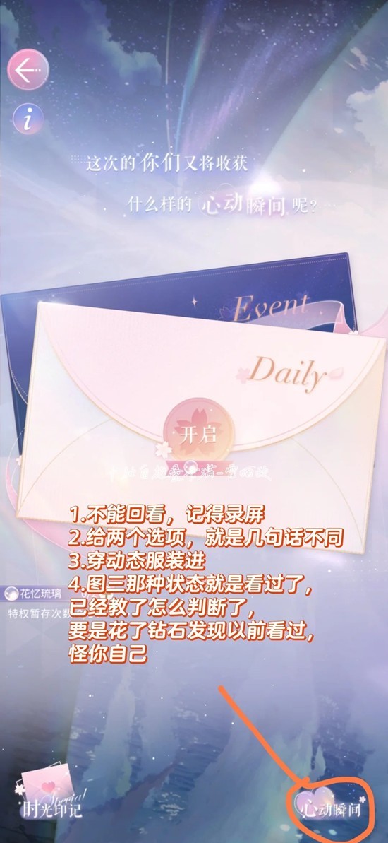 2.会给两个选项,就是几句话不同,并不会随机剧情(我刷到有一个人多次进,以为每次进都会随机给剧情,白花了好多钻,其实就是同样一段剧情里面给两个选项,不同选项几句话不一样)