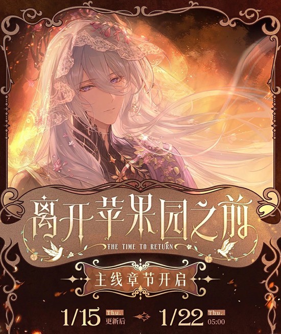 开启时间:1月15日更新后 - 1月22日05:00,通过[主界面]-[花架]进入[离开苹果园之前]。