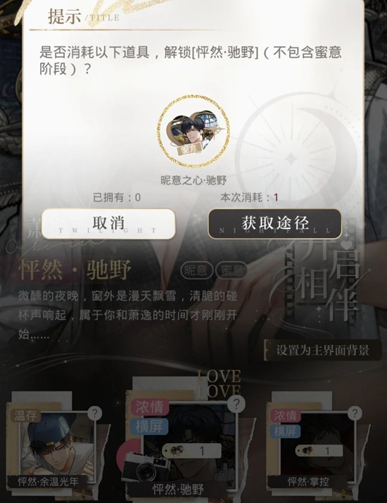 以上就是光与夜之恋萧逸驰野新卡转盘大奖,昵意之心主页设置攻略的全部内容了,更多游戏资讯,攻略内容敬请关注,您的支持是我们努力的动力!