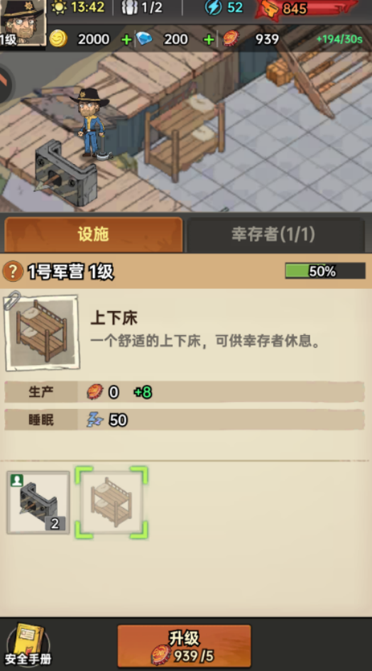 核心玩法围绕“基地建设—资源调控—卡组构筑—动态作战”四维展开。玩家需统筹规划主城功能区:仓库决定物资存储上限,兵营影响b队征召效率,工坊关联装备锻造与科技升级路径。木材、矿石、食物三类基础资源持续紧缺,采集点分布受地图事件影响,需通过侦察小队探索刷新位置。卡牌系统采用角色定位+技能类型双维度设计,每张卡对应明确职能——前排抗压型、中距火力型、后排辅助型及特殊环境适配型,战斗中需根据敌方波次构成(如高攻速丧尸群、重型变异体、带毒雾的集群单位)实时切换编队结构与阵型站位。