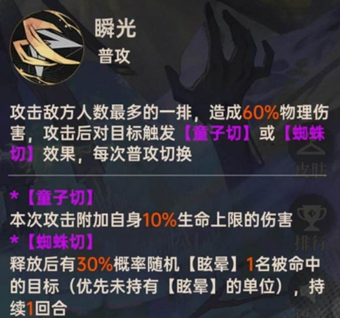 天照命的普通攻击会锁定敌方人数最多的那一横排。他的攻击会在“童子切”与“蜘蛛切”两种形态间交替。童子切能造成额外的伤害,而蜘蛛切则有30%的概率眩晕目标,并且会优先选择未被眩晕的敌人。当角色达到超限3级后,若自身处于“王权”状态,普攻将有50%的几率同时触发童子切的增伤与蜘蛛切的眩晕效果。