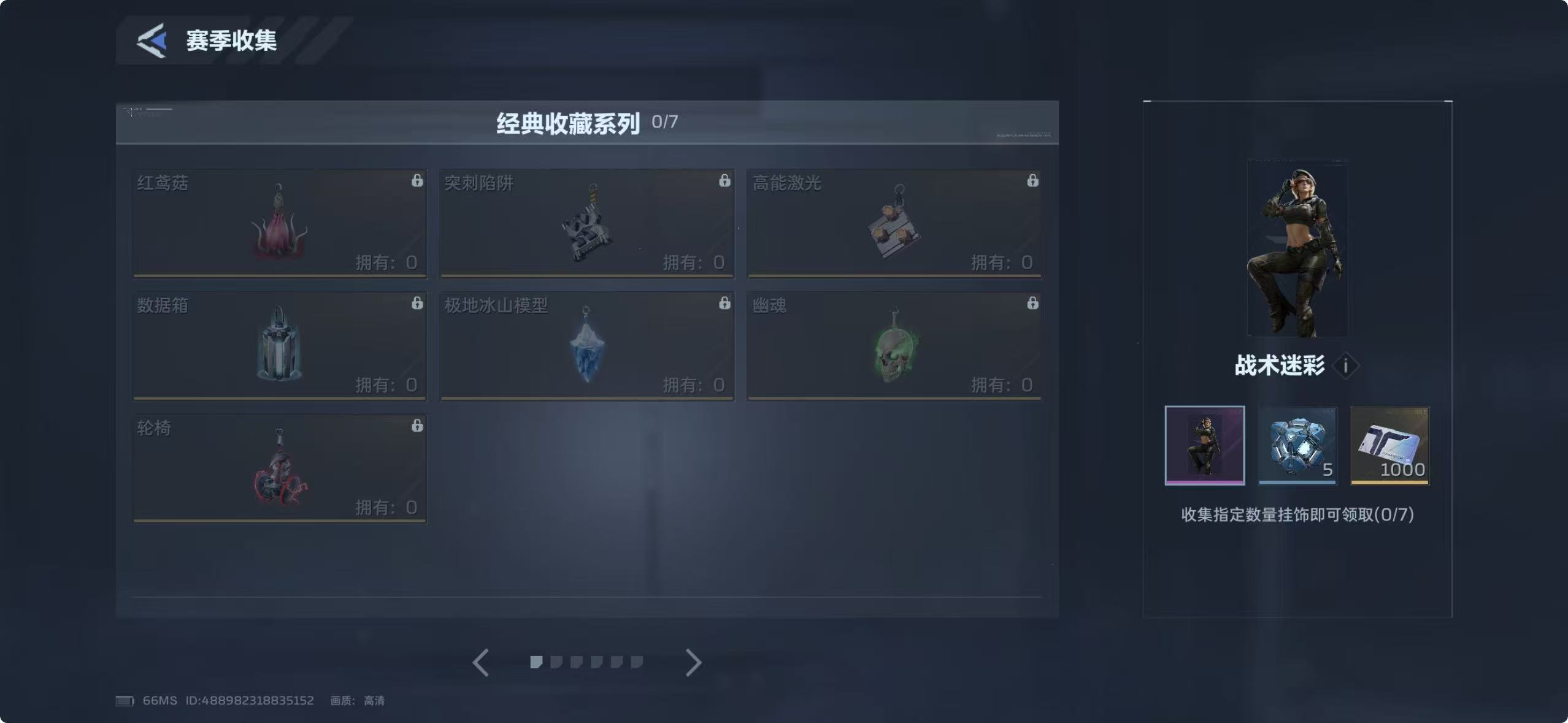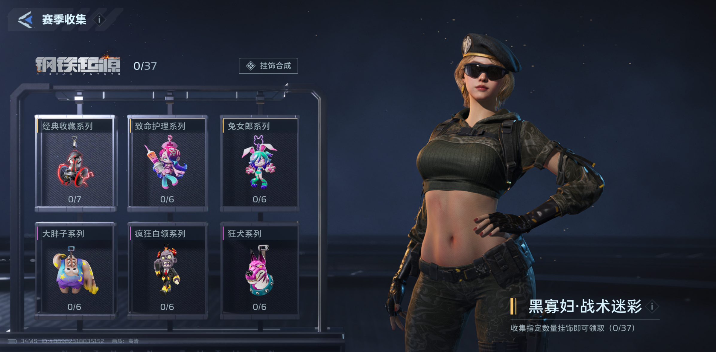当前赛季共推出37款专属挂饰,按主题划分为6个独立系列。完成任一系列全部挂饰收集,即可领取对应系列奖励;集齐全部6个系列后,将解锁终极奖励“黑寡妇-战术迷彩礼包”。每套系列收集完成后,均可获得5个钛金跃迁迷藏,该道具为后续赛季外观升级的关键资源。