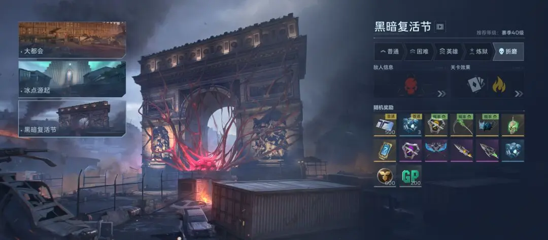 本模式延续《逆战》IP核心战斗基因,以4人小队协作抵御多波次丧尸进攻为核心。玩家通过击杀怪物获取金币,在猎场专属商店中可强化角色属性、购置战术补给、向队友空投武器装备。随关卡推进逐步解锁高阶Boss,是获取高稀有度枪械与限定道具的核心渠道。当前开放三I张主题地图:大都会、暗黑复活节、冰点起源;每张地图支持普通、困难、英雄、炼狱、折磨五档难度梯度。难度提升同步带来敌方单位强度增强、种类扩充,并在折磨难度下触发特殊增幅机制,显著提升战斗复杂度与策略要求。