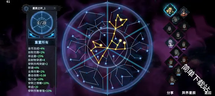 神器行者中关于星辰之环节点可以直接导入其他玩家的分享码,以此来直接在游戏中体验到不同属性下的星盘。下方为大家整理收集了一些星辰之环加点的方案码详情合集!