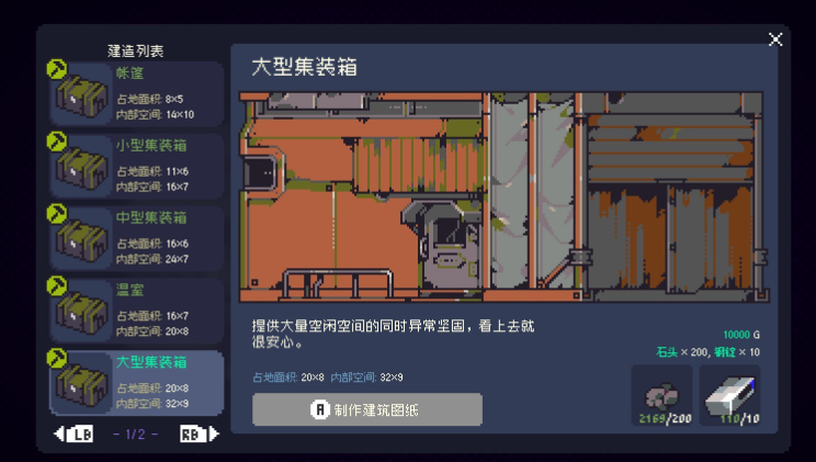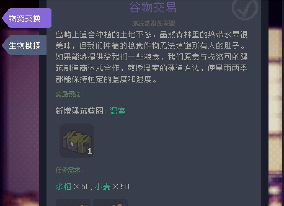 5、解锁的建筑蓝图是「植物大棚」,在植物大棚里种植,可以免受外界天气的影响,但注意受季节的影响,并不像温室一样可以无视季节。在植物大棚里边种植可以加快农作物的生长速度