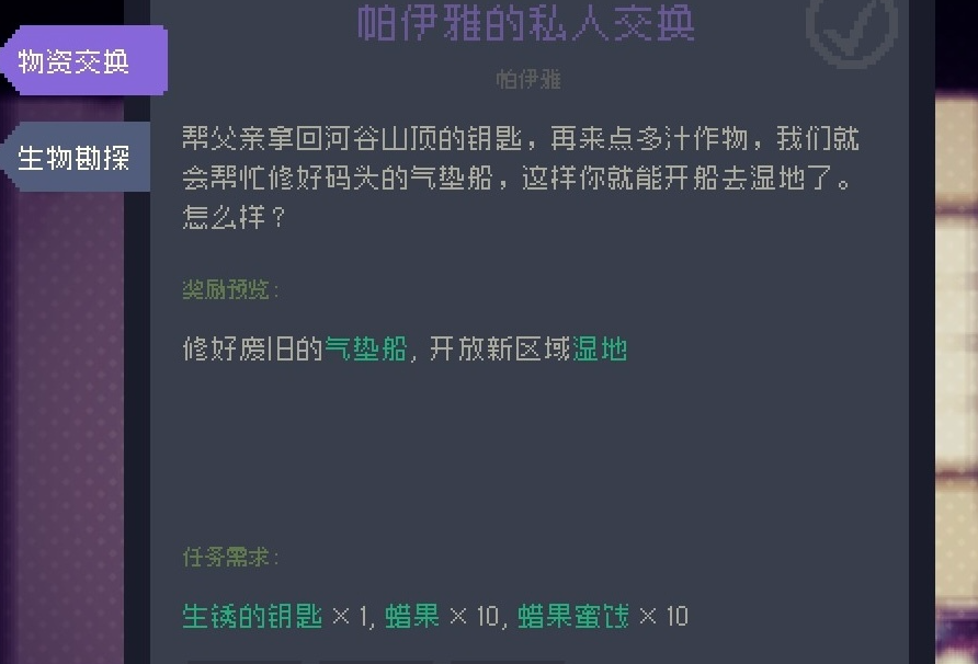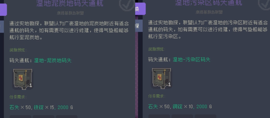 4、湿地码头:第三和第四个任务都是建造湿地的码头