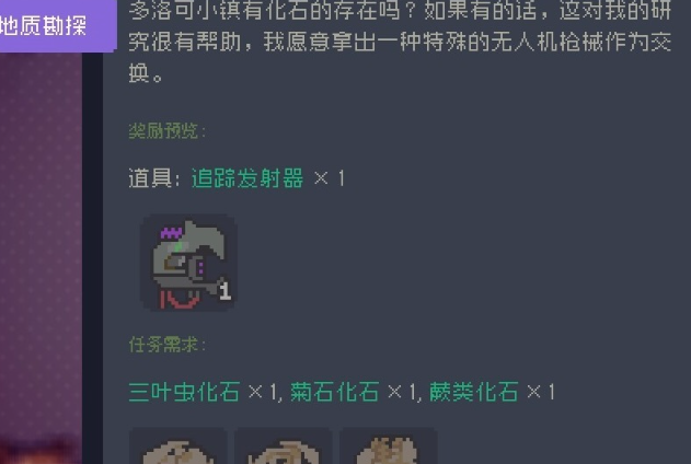 3、化石研究:第二个任务是需要你收集三种不同的化石。「菊石化石」和「蕨类化石」比较容易获取,重点在于「三叶虫化石」