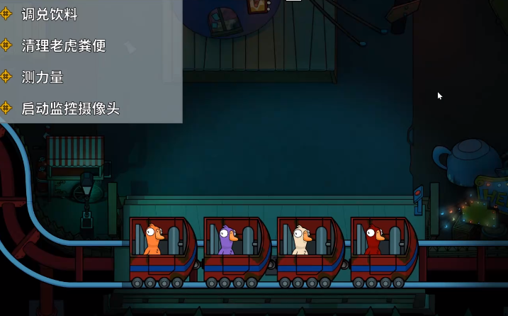 在嘉年华模式中,狼阵营共有五项核心任务:关灯、关门、擦车轮、启动千里眼、寻找铃铛。其中,“关灯”任务需前往实验室定位电机装置并触发断电,使鹅阵营视野受限;执行时须规避目击风险,建议采用单线行动或双人掩护配合。“关门”则要求抵达应急中心完成操作,成功后可将地图划分为独立区域,有效分割鹅阵营行动路径,增强围猎效率。