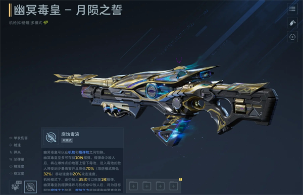 举例:例如幽冥毒皇,可以在机枪与榴弹枪之间切换,既可以高速射击,也可以发射大范围的榴弹;飓风之龙也可以在霰弹枪与炎龙弹两种模式之间切换,也是多模式机制。