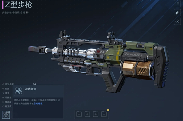 举例:Z型步枪开启主动技能后,可以在小范围区域进行锁定,自动瞄准。