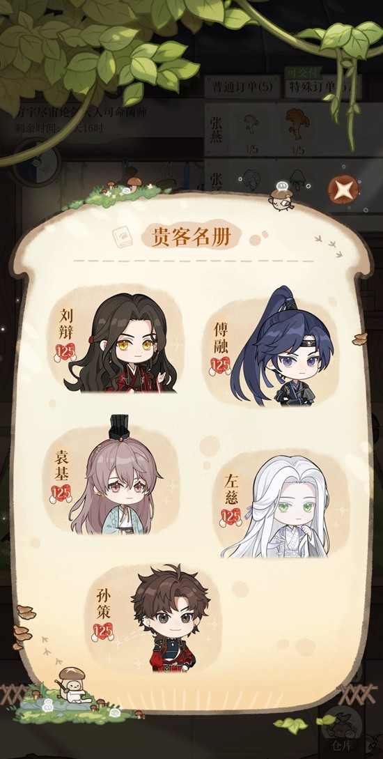 图鉴到了265。把刘辩的订单都做完了。除了第一天做男主订单刷出一张仙品图谱导致袁基有2个仙品订单,其他人的订单都不算太难。