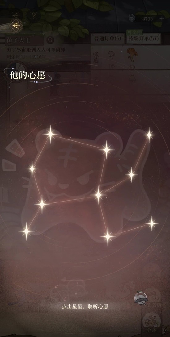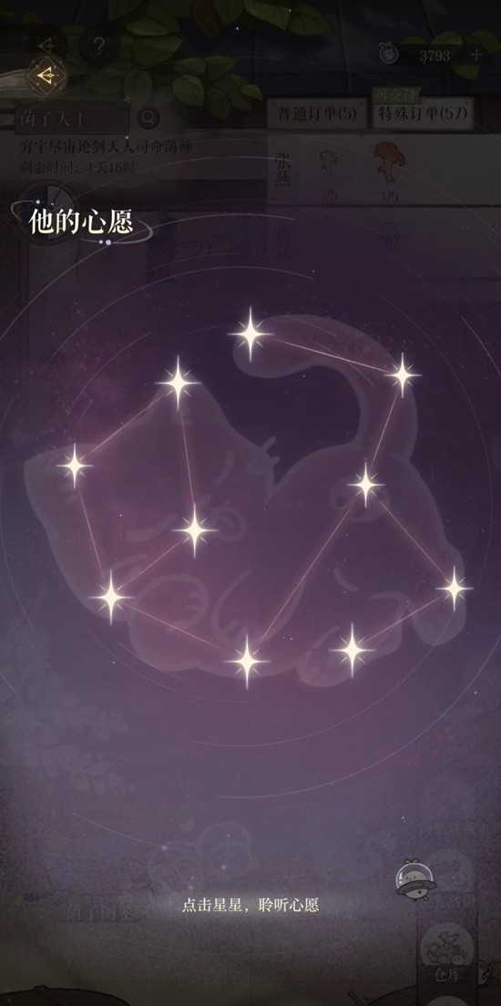 看到攻略说男主订单和开的图鉴有关,就停止了种蘑菇,图鉴保持在117个。8号更新前,除了睡觉,基本保持了20分钟上线一次添加营养液种老土帽,在8号终于彻底解放了。每天的40白薯都买完。白龙2图的木头出的慢,刷了有4、5天才齐,后悔没有多刷点珍品油。