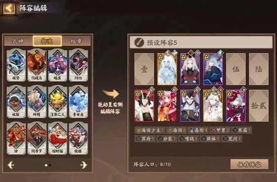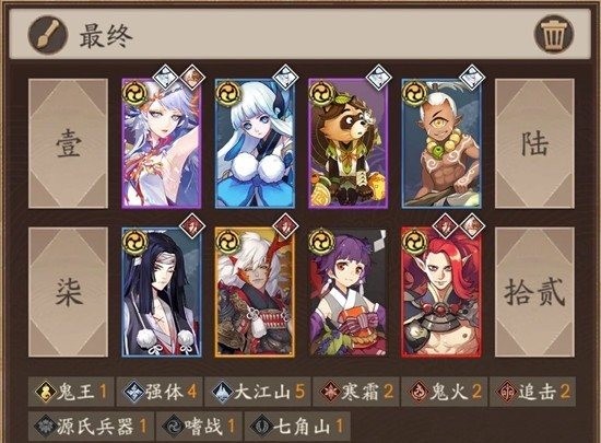 3、若选了御魂类buff,在之后的百鬼夜行上若没心仪式神尽量选择buff对应的御魂(该阵容主推荐:狰,应声虫,青女房,招财,前排出狰、青女房,后排出应声虫)