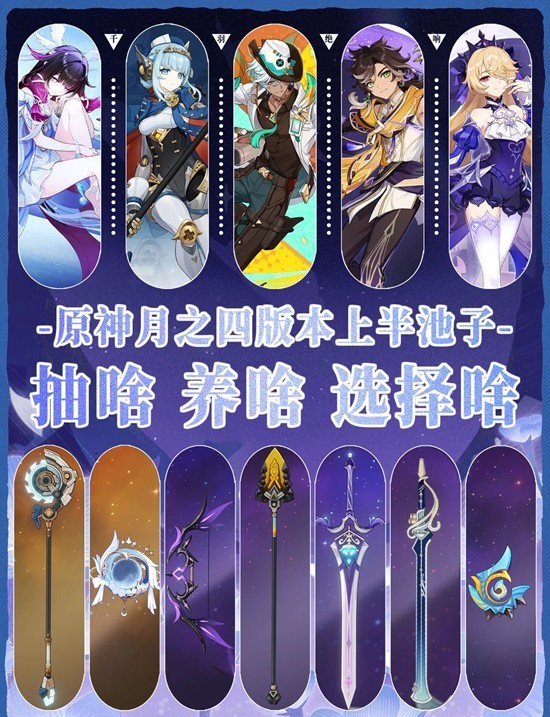 以上就是原神月之四新版本前瞻攻略,月之四上半卡池抽什么角色推荐的全部内容了,内容来自网络整理,具体版本请关注官方发布内容。更多游戏资讯,攻略内容敬请关注,您的支持是我们努力的动力!