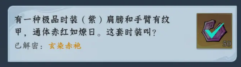 2、有一种极品时装(紫)肩膀和手臂有纹甲,通体赤红如燎日。这套时装叫?玄染赤袍