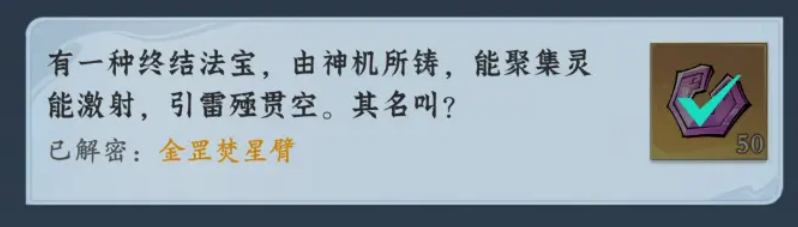 3、有一种终结法宝,由神机所铸,能聚集灵能激射,引雷殛贯空。其名叫?金罡焚星臂