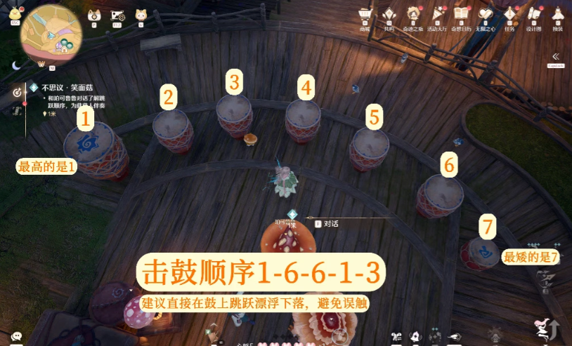 无限暖暖2.1版本中的不思议推理题目中,深林幻溺夜选择接触过的水源;亡骨之宴分别选择将军墓志铭、语序、那串数字,那串旋律;笑面菇敲鼓从左到右把鼓分为1-6,跳到鼓上,按顺序跳鼓1、鼓6、鼓6、鼓1、鼓3即可。