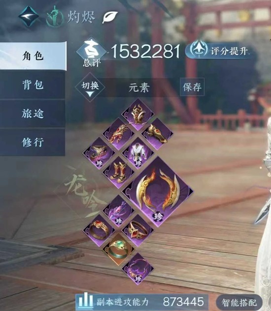 目前新木桩比较缺元素忽视,所以还是常规搭配,上半身百炼四件套+元素衣服+紫色腰带独珍(可以用材料更改颜色),下半身百炼两件套+团本老一独珍+紫色元素项链(可以用材料更改颜色)+橙戒(洗出元素带元素,没有元素也可以带会心和克制),独珍武器这周无脑升155级
