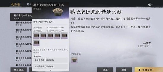 Step4 返还的36个自选箱子其一至其六各开六个,回到图右下角点击提交宝物找到鹤长老提交六套神秘宝物,即可领取所有寻珍奖励