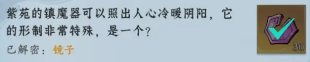 3、紫苑的镇魔器可以照出人心冷暖阴阳,它的形制非常特殊,是一个?镜子