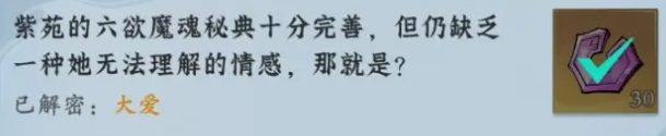 4、紫苑的六欲魔魂秘典十分完善,但仍缺乏一种她无法理解的情感,那就是?大爱
