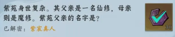 5、紫苑身世复杂。其父亲是一名仙修,母亲则是魔修。紫苑父亲的名字是?紫宸真人