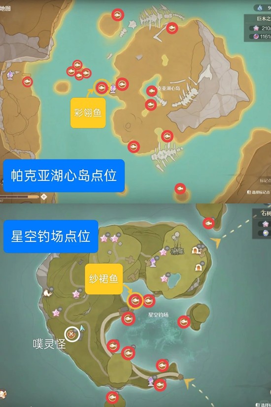 星空钓场,有固定纱裙鱼点位,同样建议全钓光,岛上其他点位也有几率钓到纱裙鱼