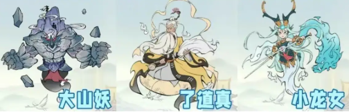 小龙女(减伤无敌,几乎所有流派都有她的身影) +大山妖/大树妖(山妖提高最终减伤,和小龙女搭配可以拉满减伤,树妖强灵效果) +了道真(闪避必备精怪,闪避成功即可回血)