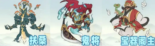 鬼将(敌方生命高于60%即可提升高额伤害) +扶桑(首次死亡将复活恢复部分血量,因为伤害拉满缺少容错,需补充此精怪) +宝器阁主(暴击后还可提升自身攻击力)如果缺暴击可以拿大明王,缺减伤可以用龙女山妖,如果有碎心了可以把扶桑下掉。