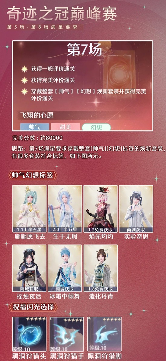 > 第7场满星要求穿戴整套[帅气][幻想]标签的焕新套装,有很多套装符合标签,如图所示。