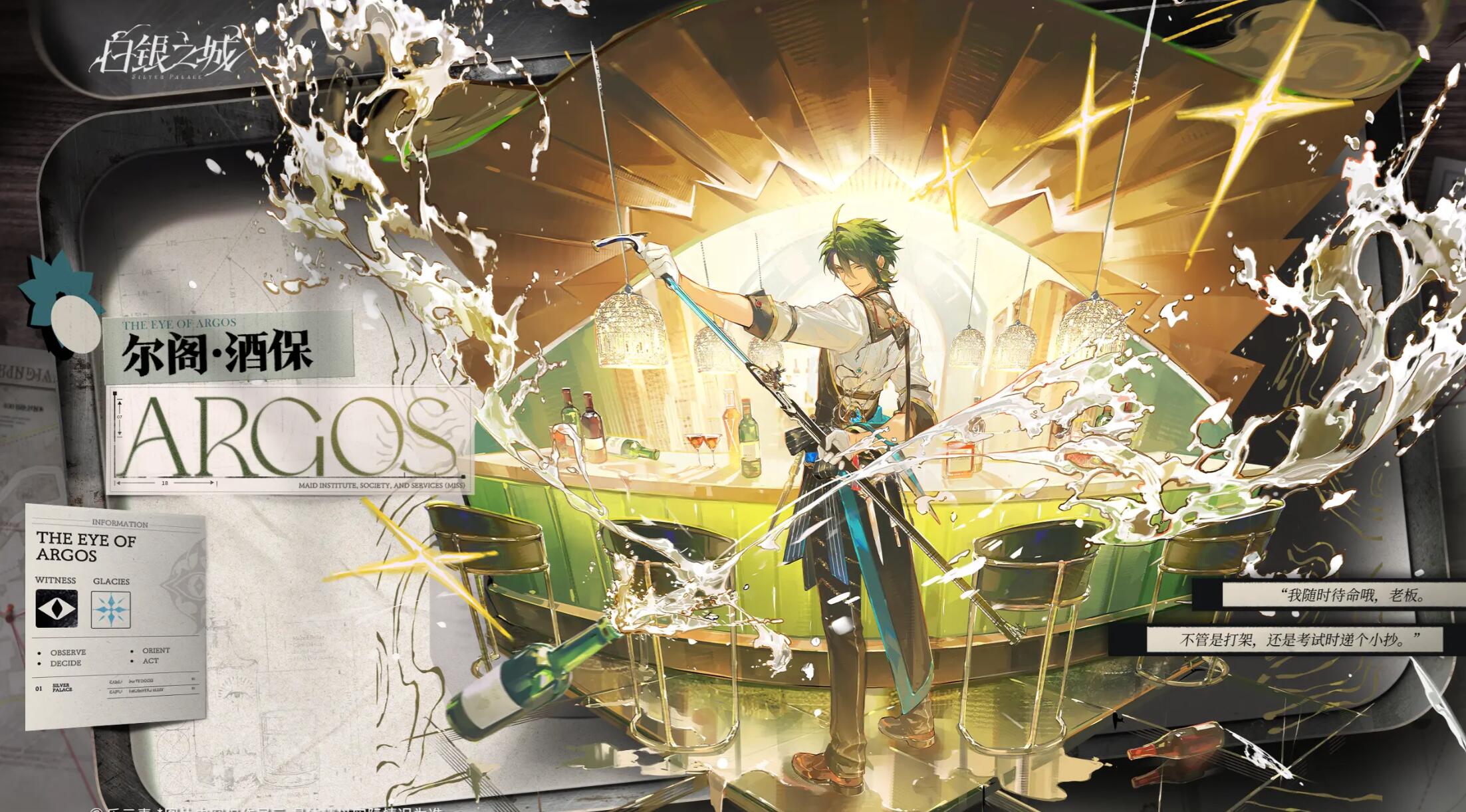 尔阁并非传统意义上仅负责调酒的服务人员。他的过往履历中曾隶属女仆协会,后因职能调整转入夜莺酒吧,表面是兼职调酒师,实则以该身份为掩护开展情报收集工作。酒吧作为城市信息交汇的核心节点,汇聚各路人物,而尔阁正是凭借敏锐观察与精准话术,在看似随意的对话中提取关键线索。这种“以静制动、以饮为媒”的情报运作模式,构成了他在《白银之城》世界观中的核心价值。