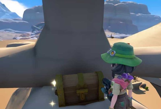 除了这个位于高处的骨架宝箱,沙石镇时光的这片沙漠里还隐藏着另外三个宝箱。从骨架下来,在其正下方的沙草堆里,就藏着第二个宝箱。不过,这个宝箱被沙土半掩着,无法直接开启,你需要使用工具“羽毛掸子”将其清扫出来。需要注意的是,这个位置处于三叉戟蝎的活动范围,在开启宝箱前,最好先清理掉周围的怪物,以保证安全。