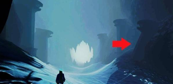 穿过柱子走廊中的管道后,在右侧倒数第三根和第四根冰柱之间可以看到贝壳。