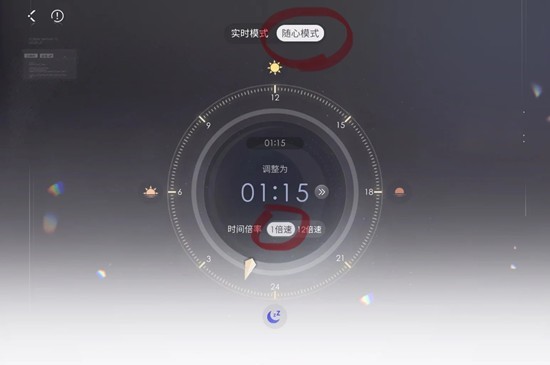 4、调时间。把时间调成随心模式1倍速。根据我的观察祁煜喜欢在早上7点插花,试了很久,把时间调成7点祁煜插花的概率很高。秦彻喜欢早上4点,沈星回喜欢凌晨4点,黎深喜欢凌晨4点,夏以昼喜欢凌晨1点。